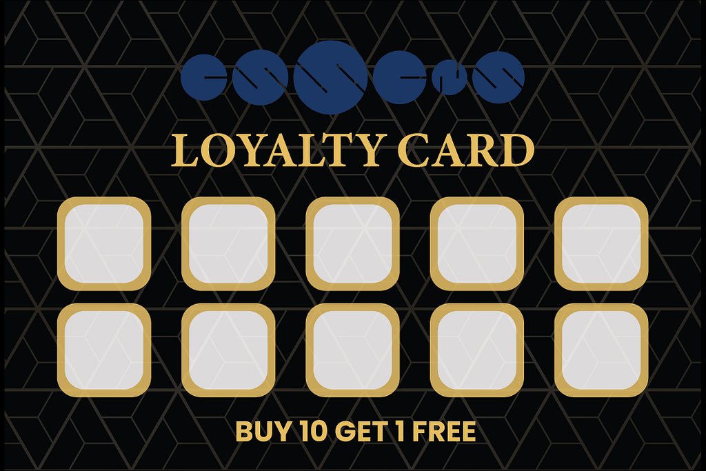 The new ESSENS Loyalty Cards includes the QR Code to your shop, your Name, Contact Details on one page and 10 fields for purchases on the back page.