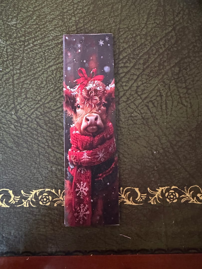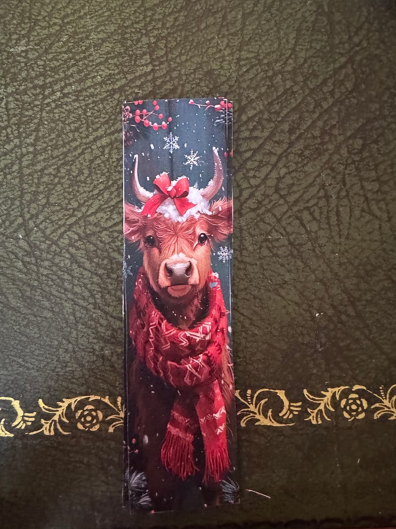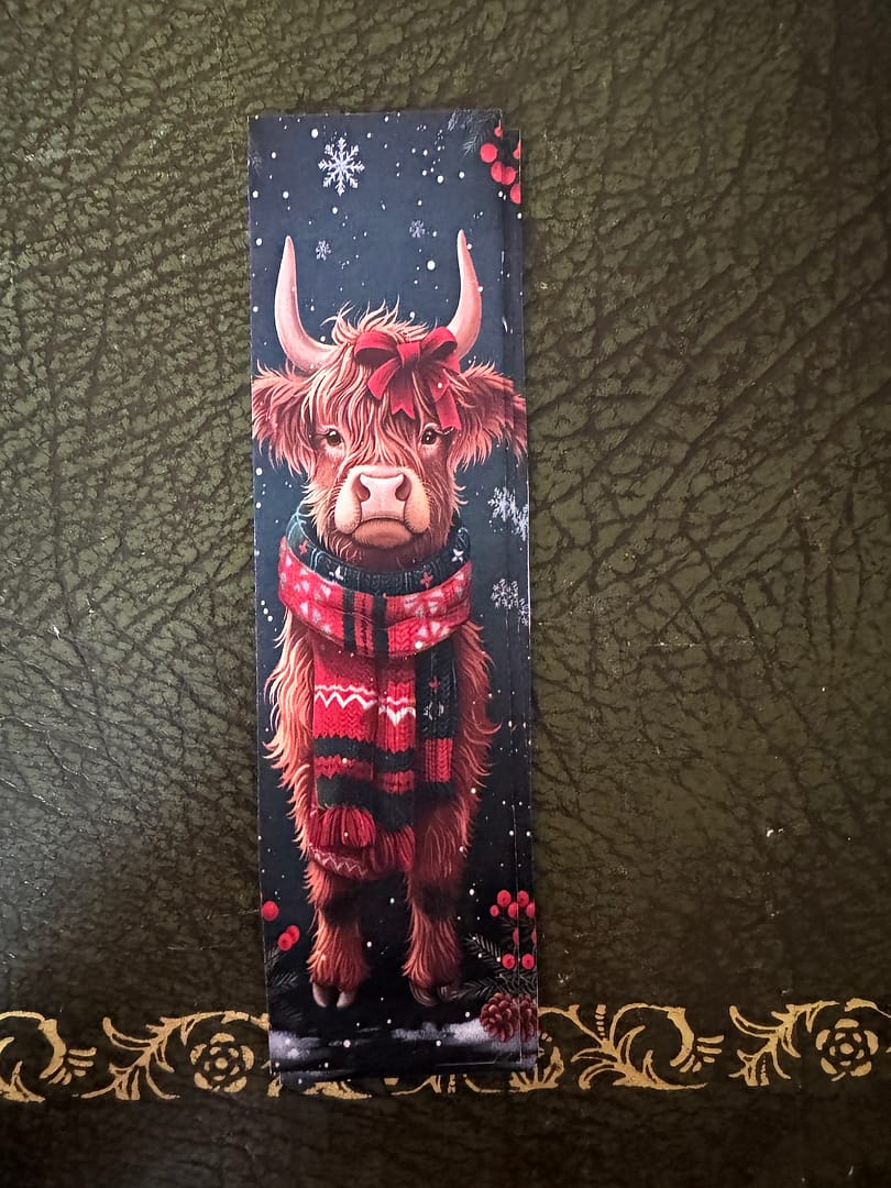 I made a set of Three Reindeer Design Bookmarks. Scarf, Holly, and Bow, Snowflakes in background £ 2.50