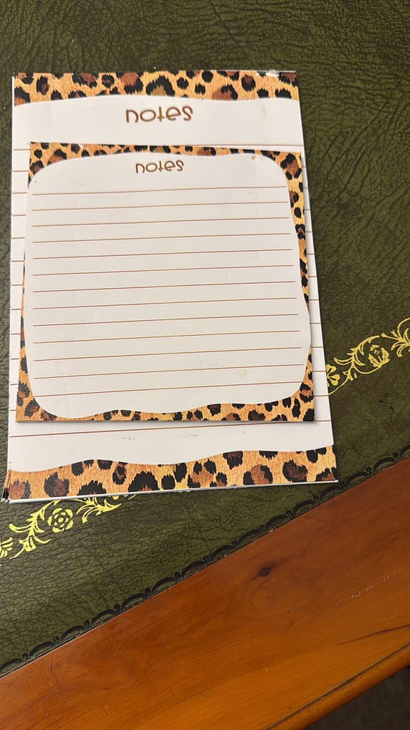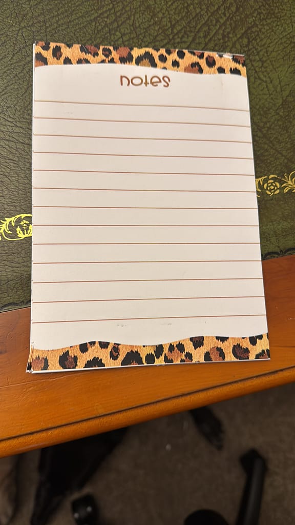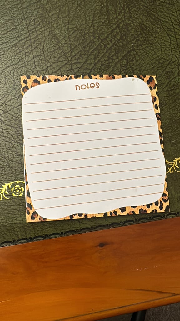 Add a touch of wild elegance to your everyday notes with this beautifully designed leopard notepad. Measuring 12.5cm x 12.5cm, it’s perfectly sized for your desk, handbag, or bedside table. Each page is lined with a generous 1.7cm spacing, making it easy to jot down thoughts, lists, or reminders with style and clarity. Framed with a striking leopard-print border, this notepad blends functionality with chic design — a classy little gift for yourself or someone special.Lovingly designed in Whitley Bay, it’s more than just stationery — it’s a statement piece for those who like their notes as stylish as their surroundings.