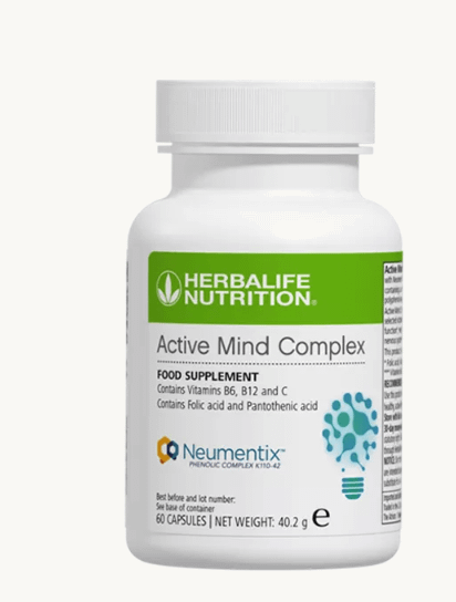 Active Mind Complex is formulated with a blend of carefully selected vitamins such as Folic acid, Pantothenic acid and vitamins C, B6 and B12. Folic acid, vitamins B6, B12, C support normal psychological function. Vitamins B6, B12 and C also support normal functioning of the nervous system whilst Folic acid supports normal mental performance.