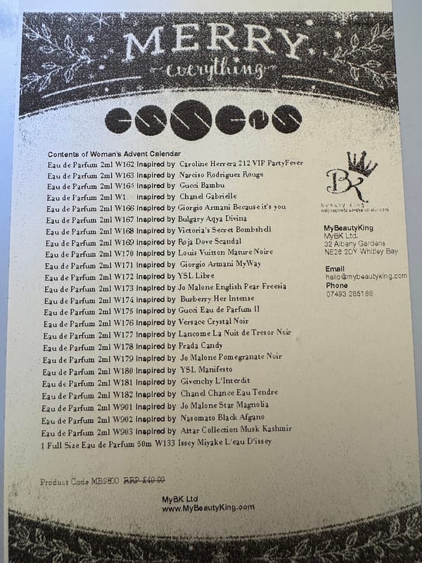 The Essence Advent Calendar 2025 is available right now. It contains 25 Fragrances 1.5 ml and a full size EDP with 50ml on the 25th day. A full fragrance List is in the product pictures