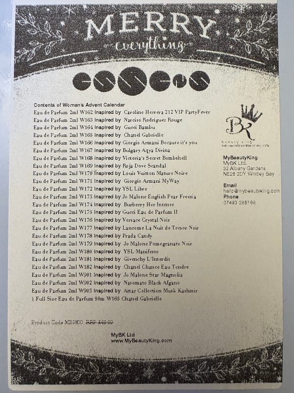 The Essence Advent Calendar 2025 is available right now. It contains 25 Fragrances 1.5 ml and a full size EDP with 50ml on the 25th day. A full fragrance List is in the product pictures