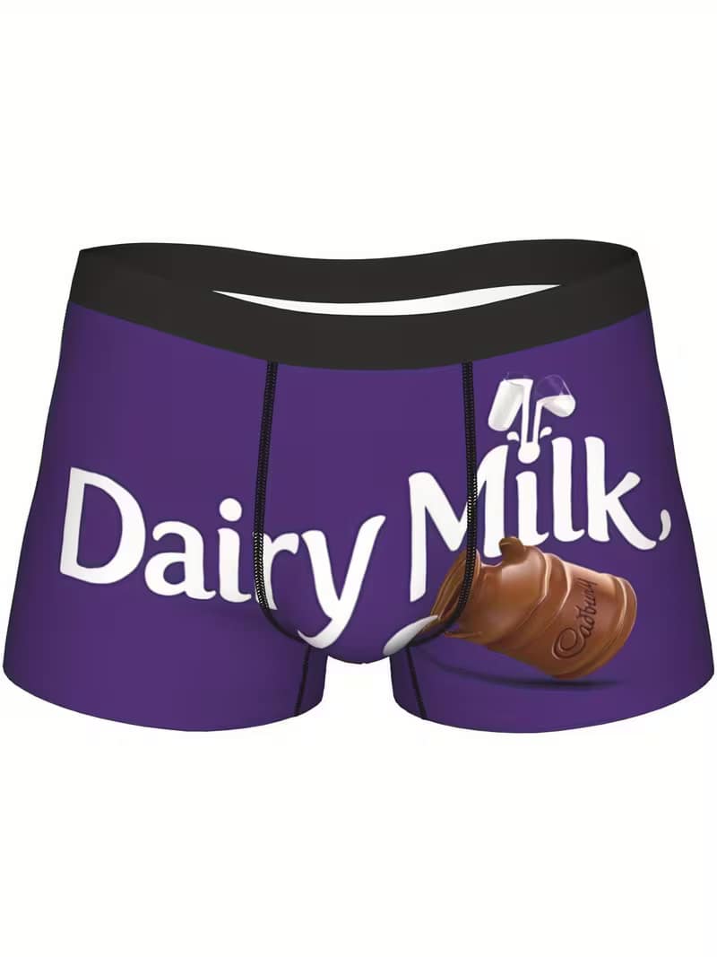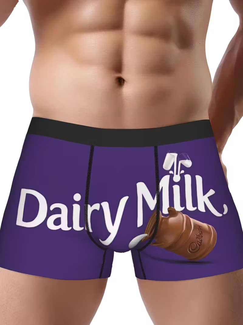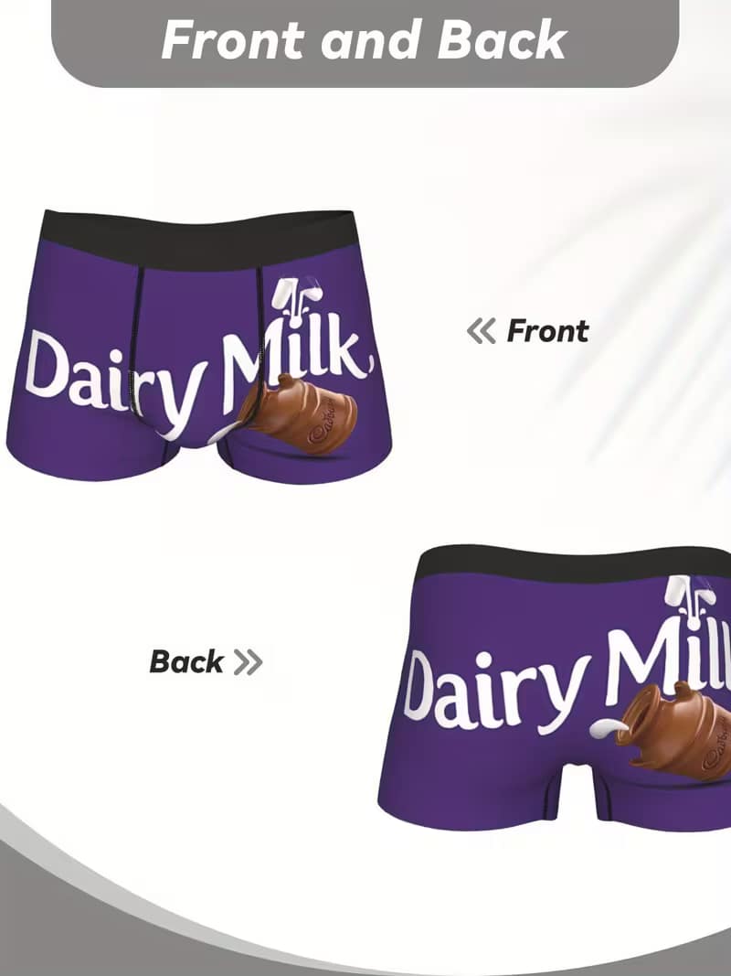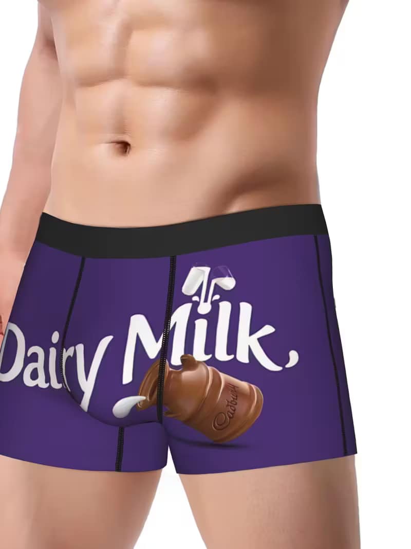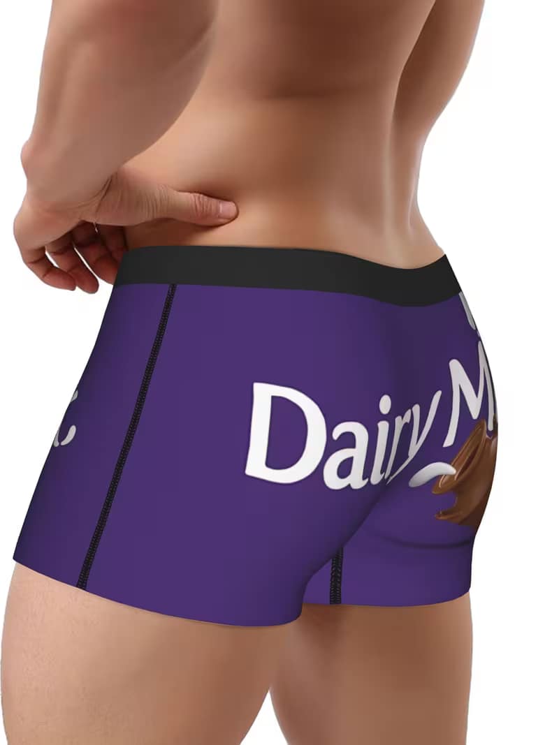 Slip into something that knows how to flirt. These men’s boxer briefs wrap comfort and confidence in a bold purple hue, finished with a cheeky Dairy Milk–inspired design that doesn’t mind being noticed. Playful on the surface, smooth where it matters.