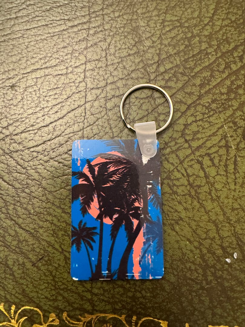 Palm Trees Sunset Key Ring inspired by the 80ties Key Ring. This Keyring is Handmade in Whitley Bay with Love.