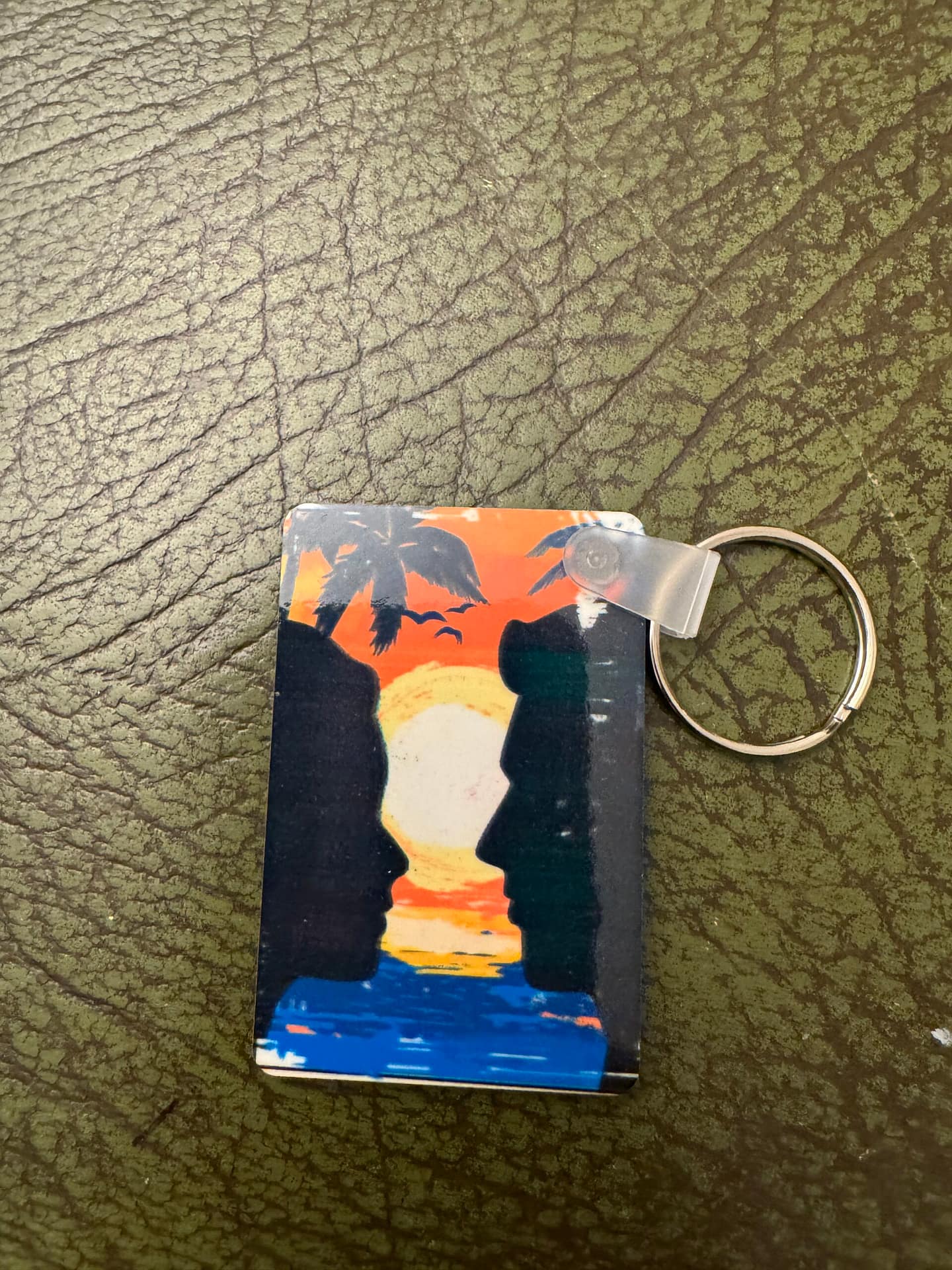 Two Faces Sunset Key Ring inspired by the 80ties Key Ring. This Keyring is Handmade in Whitley Bay with Love.