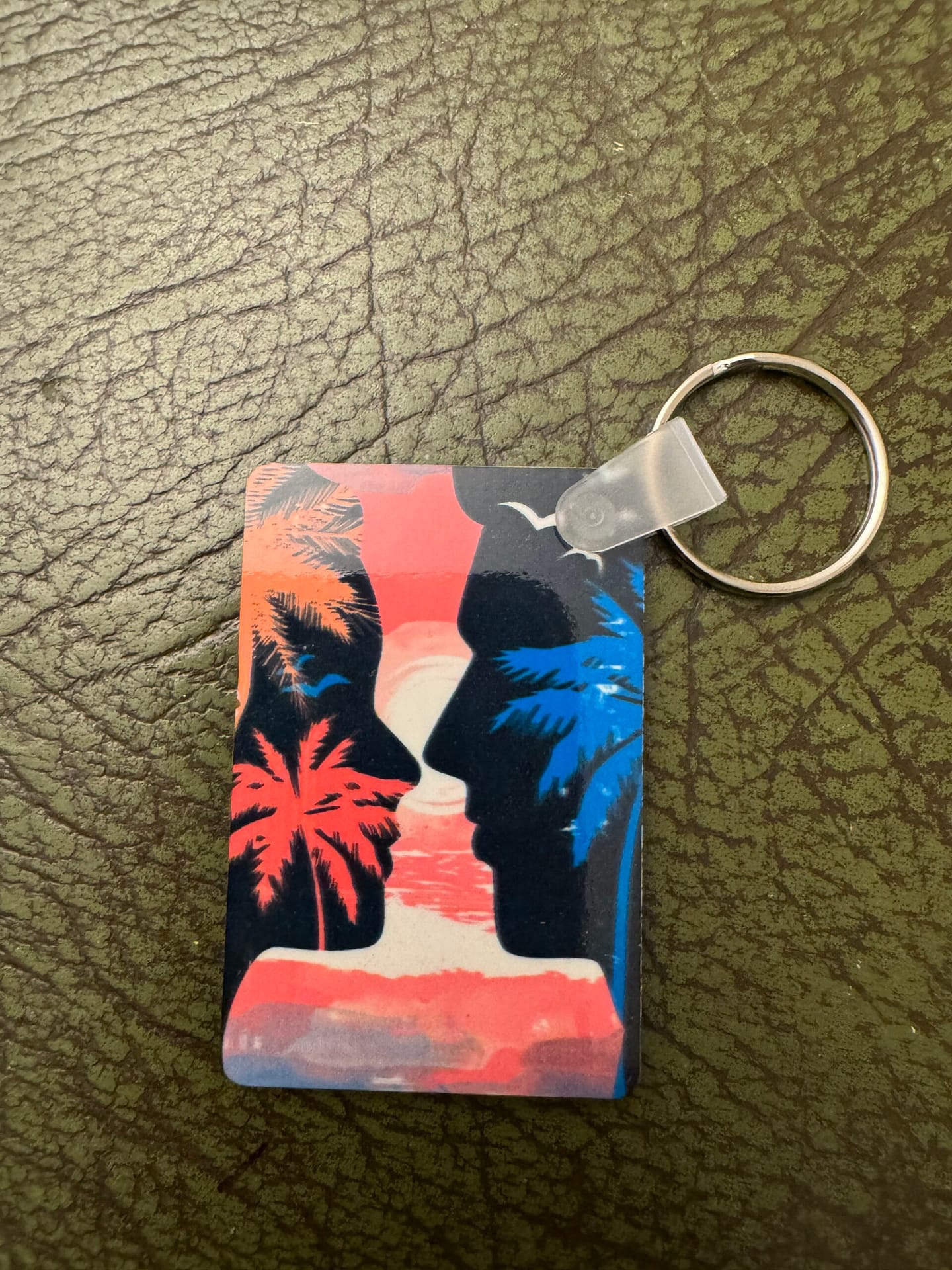 Two Faces with Ocean and Palm Tree Key Ring inspired by the 80ties series Miami Vice Key Ring. This Keyring is Handmade in Whitley Bay with Love.